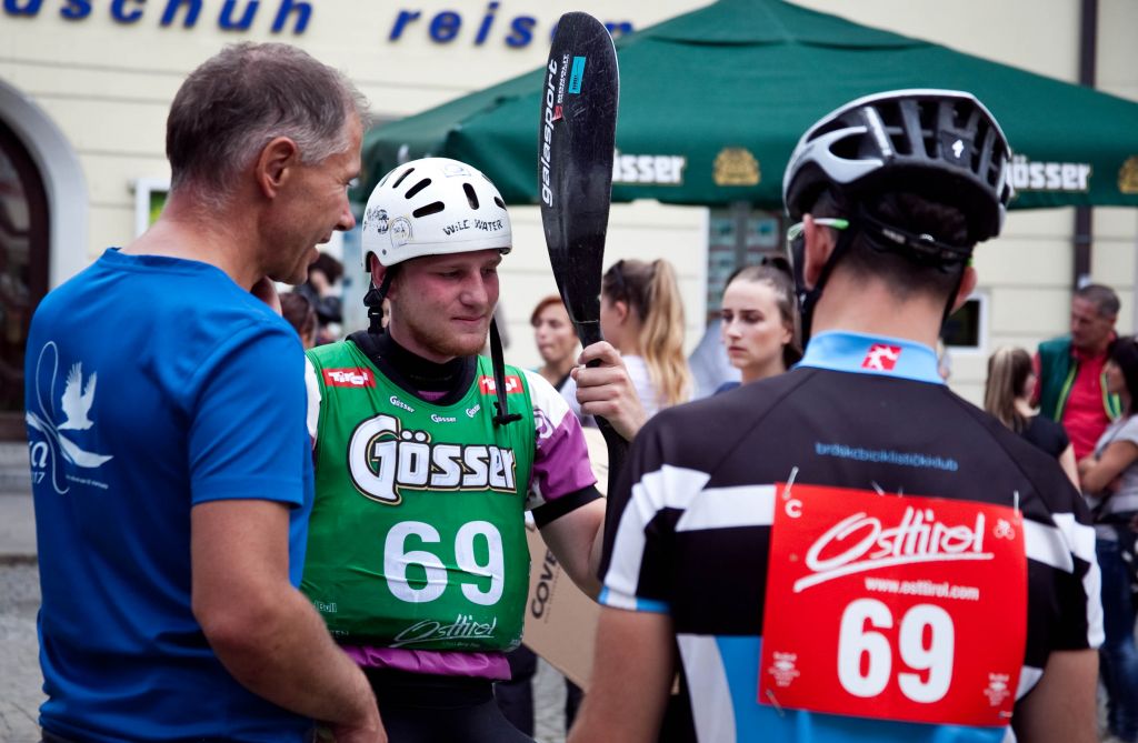 Na kraju brdski biciklisti predaju štafetu kajakašima koji trče do mosta, gdje ih čeka skok sa sedam metara kajakom u Dravu, te tridesetak minuta spusta po divljoj vodi, uzvodnog veslanja, te za kraj trčanje s kajakom u cilj na glavnom trgu Lienza.