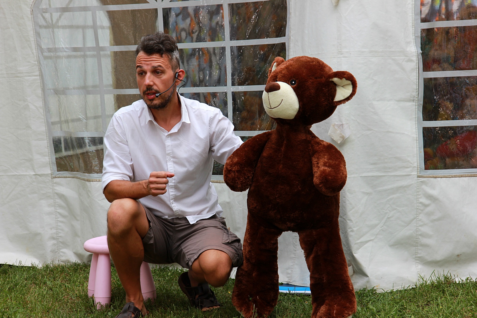 Uz mnoštvo okupljenih mališana, Igor Baksa uprizorio je priču o jednom medvjediću pod nazivom 'Budi sretna priča jednog medvjedića'