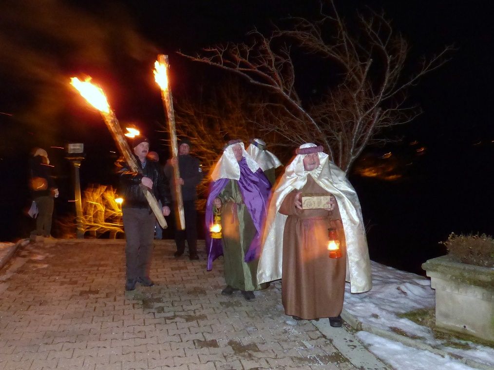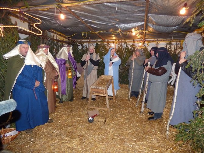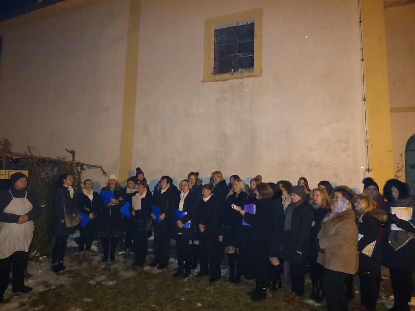 Drugi dio programa se odvijao na otvorenom, ispred štalice smještene na prostoru do sakristije i zapadne lađe crkve, gdje su članovi Udruge Stara brv iz Gornje Voće uprizorili žive jaslice.
