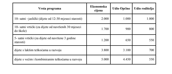 primjenjuje nova ekonomska cijena, odnosno usluga vrtića, a