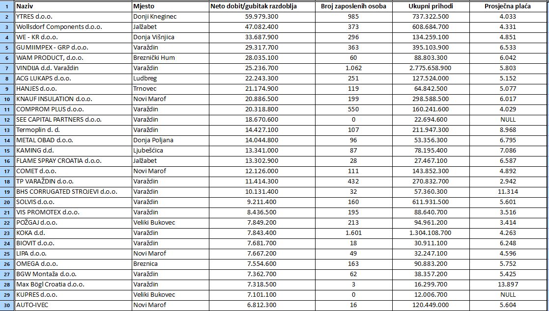 iz Donje Višnjice, s 34 milijuna kuna dobiti. Radi se o tvrtki