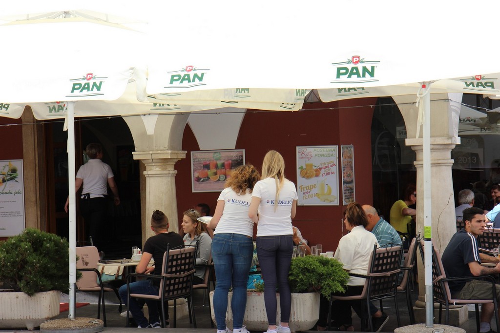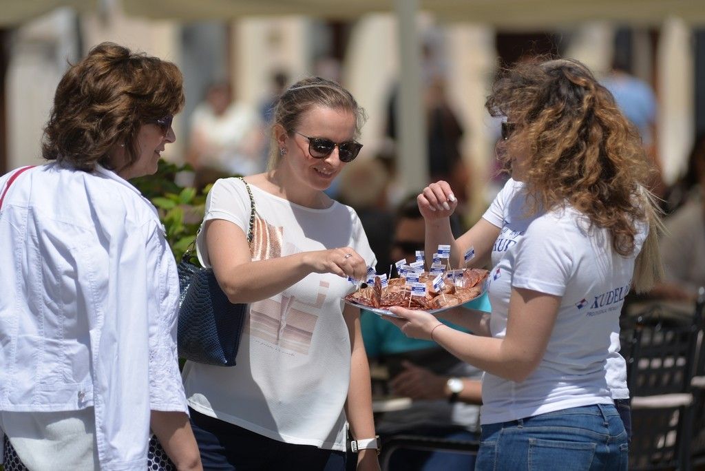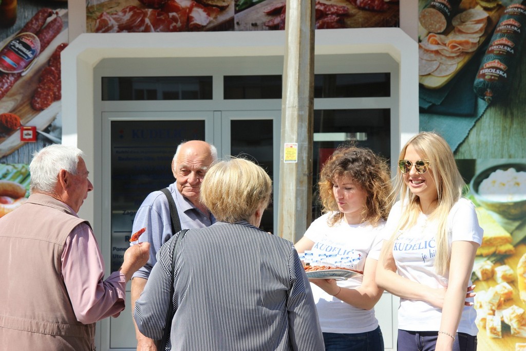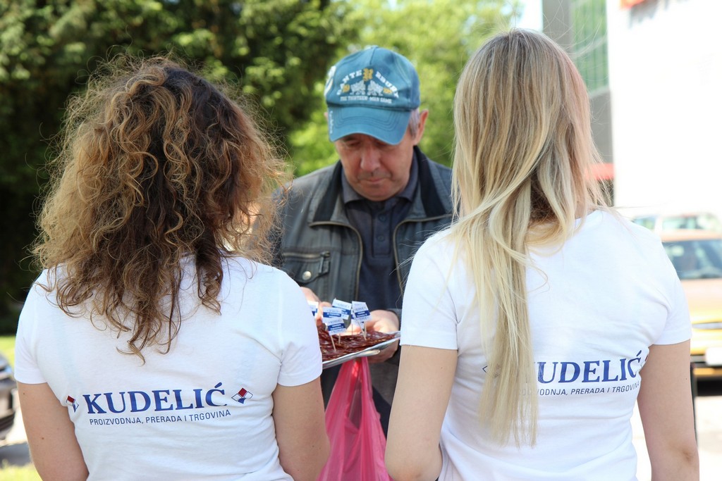 Isprva nedoumica, ali kako su se naše ljupke hostese približavale ljudima, logo Kudelić otvorio je osmijeh. U tren smo odradili degustaciju sa slučajnim prolaznicima i predstavili domaće salame i mesne prerađevine u prvom licu marketinga – iz plate u usta.