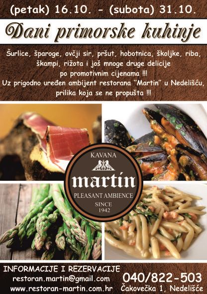 Dani ribljih specijaliteta u ‘Martinu’ Nedelišće traju od 16. do 30.10. Događaj je koji se ne propušta! Rezervacije i informacije na 040/822-503.