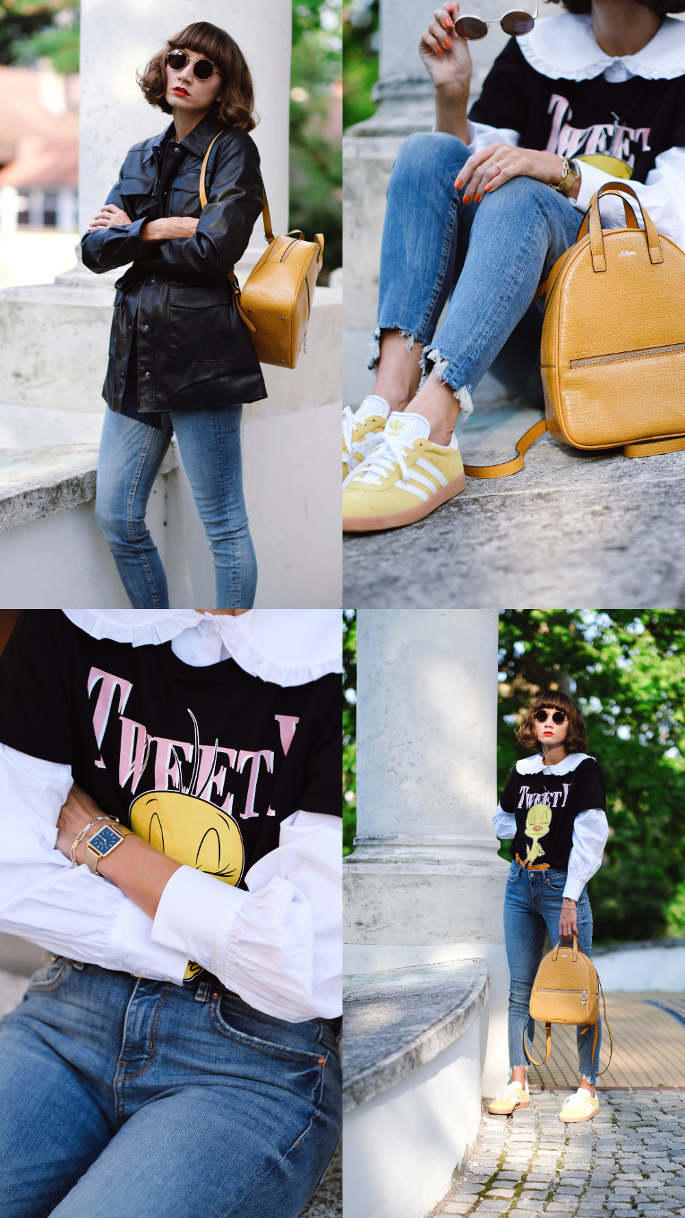 majicom, klasičnim tenisicama i torbicom u žutoj boji koja će