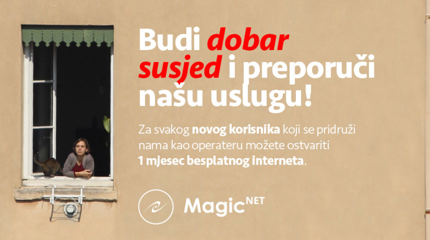 Za svakog novog korisnika kojeg preporučite, možete ostvariti mjesec dana besplatnog Interneta.