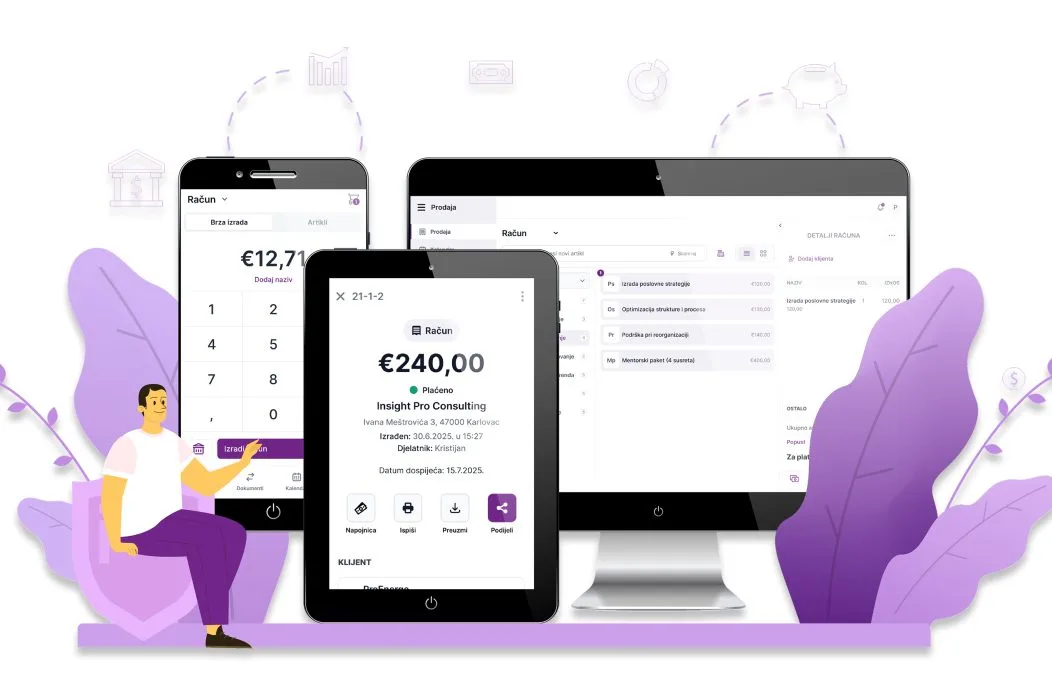 U vodiču koristimo Marketino, moderno i jednostavno rješenje koje objedinjuje sve obveze iz Fiskalizacije 2.0 na jednom mjestu: fiskalizaciju, eRačune, eArhivu i eIzvještavanje. Marketino radi na računalu i mobitelu, izuzetno je jednostavan za korištenje, besplatan je do ožujka 2026. inema ugovorne obveze.