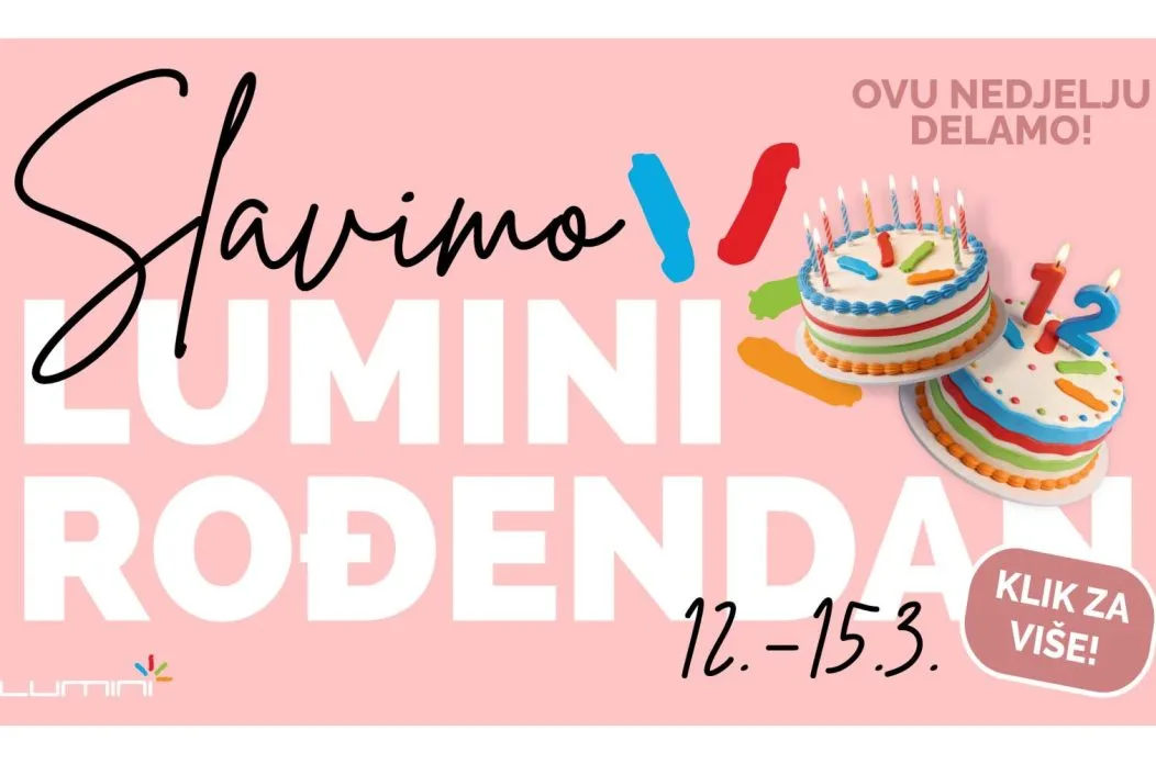 Od četvrtka, 12., do nedjelje, 15. ožujka, slavimo 12. rođendan uz veliki Lumini Shopping Fest, pregršt popusta, zabavni program i nagrade za sve generacije. Dobra vijest za sve ljubitelje vikend shoppinga – delamo i u nedjelju, pa je ovo savršena prilika da ‘obavite nekaj usput’ i uživate u druženju i zabavi na jednom mjestu.