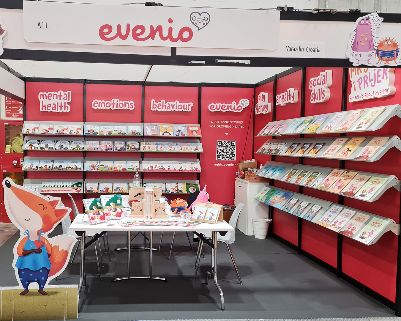 „Na sajmu u Bologni izlaže nešto više od 1700 dječjih nakladnika iz cijelog svijeta, a na Londonskom sajmu knjiga više od 1000 izlagača iz više od 100 zemalja svijeta. Među njima smo bili i mi, što je već samo po sebi velika stvar za malog izdavača iz Varaždina. Osim nakladnika, sajmovi okupljaju agente, urednike, prevoditelje, pisce, ilustratore i druge profesionalce iz branše, a sklapaju se poslovi prodaje autorskih prava i licenciranja. Tako smo i mi došli prezentirati naše naslove te ih ponuditi u vidu autorskih prava izdavačima iz drugih zemalja da ih objave na svojem jeziku i u svojoj državi“ – objasnila je direktorica i urednica u Eveniju, Jelena Kovačić.