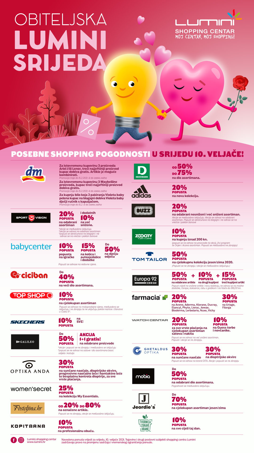 10. veljače čak 23 trgovine u Trgovačkom centru Lumini nude niz pogodnosti!