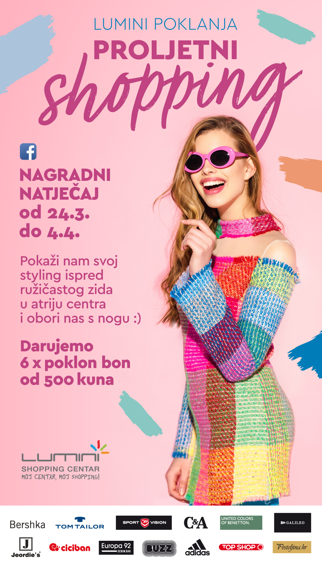 Pronađite ružičasti zid u atriju centra, pokažite nam svoj styling i uključite se u nagradni natječaj 'Lumini poklanja proljetni shopping!'. Možete osvojiti poklon bon od 500 kuna...