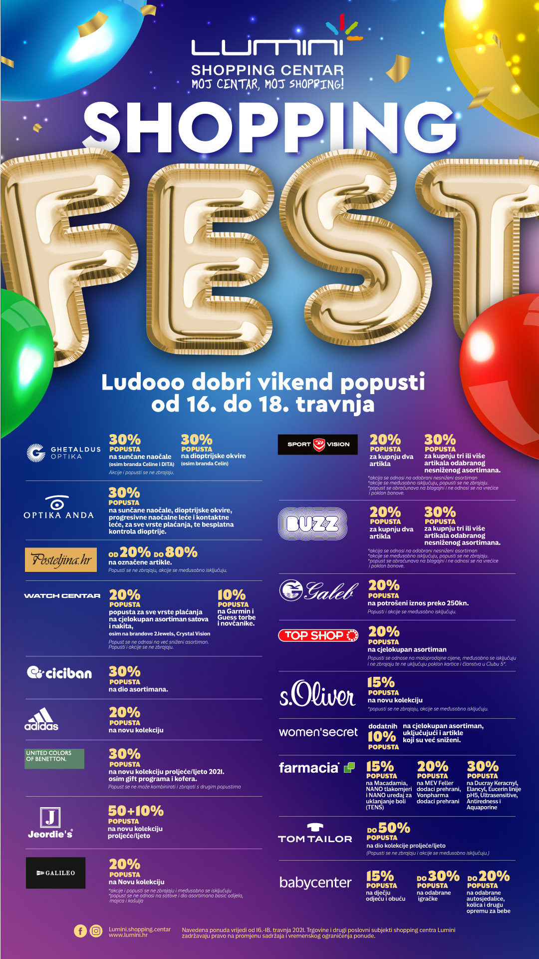 Od 16. do 18. travnja čekaju vas ludo dobri vikend popusti jer centar Lumini slavi 7. rođendan!
