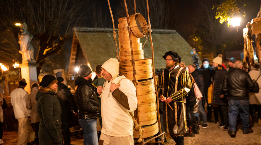 Putujući trgovci, vatreni show, mušketiri i haramije, dvorske lude i žongleri, srednjovjekovne kupke, uz nezaobilaznu gozbu prigodnih delicija i slastica koje spremaju kuhari i pekari, moći će se naći na Srednjovjekovnom božićnom sajmu.