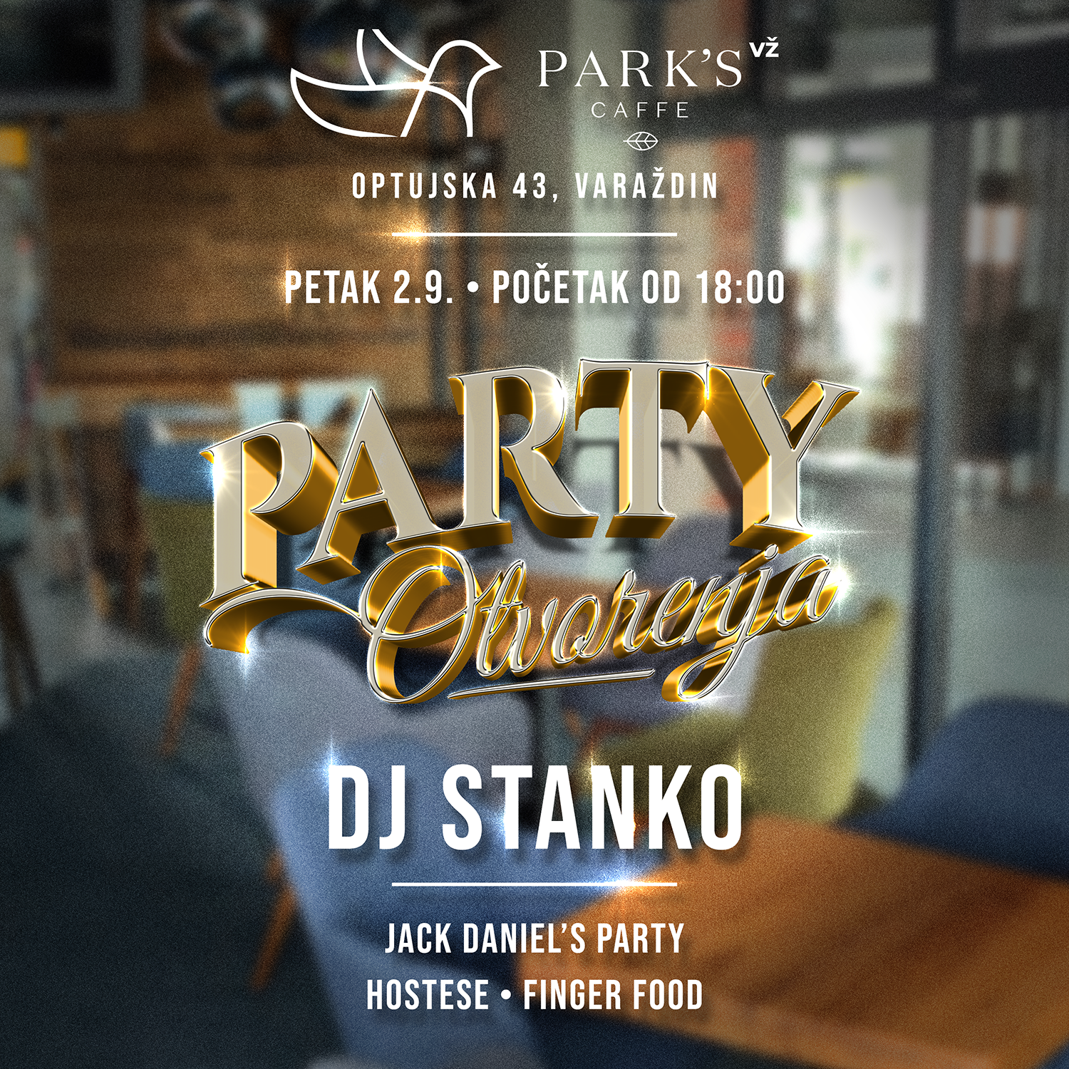 Poznati čakovečki lanac kafića Park's Caffe od ovog petka, 2. rujna, priprema poseban party povodom otvorenja u Varaždinu, u Optujskoj ulici 43, s početkom od 18 sati. Očekuje vas DJ Stanko, Jack Daniel's party, hostese, fingerfood i vrhunska atmosfera.