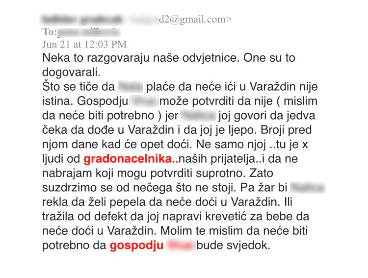 Riječ je o jednom od mailova koji su bivši partneri izmijenili u