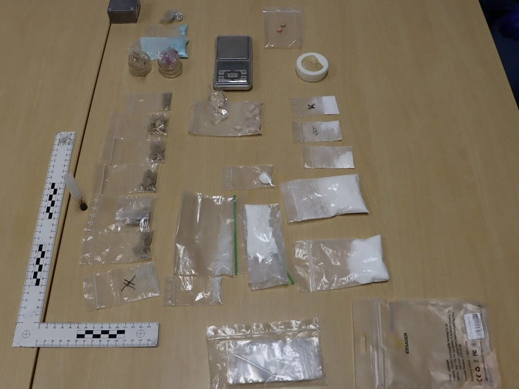 Tijekom policijske kontrole, 52-godišnji muškarac dragovoljno je predao policiji 21 gram smeđe tvari nalik na drogu MDMA, smeđe i plave tablete nalik na MDMA ukupne mase 18 grama, 22,2 grama bijele praškaste tvari nalik na ketamin, 16,9 grama bijele praškaste tvari nalik na amfetamin, 9,7 grama prozirne tvari nalik na metamfetamin, digitalnu vagu i 19 prozirnih PVC vrećica.
