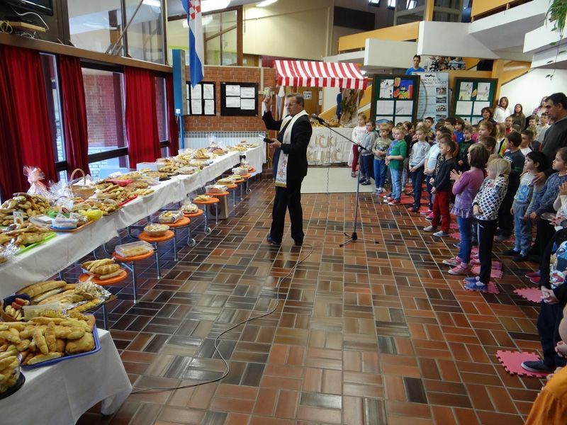 Učenici su sa svojim razrednicima i ostalim učiteljima nakon svečanog programa blagovali blagoslovljene krušne proizvode koje su donijeli.