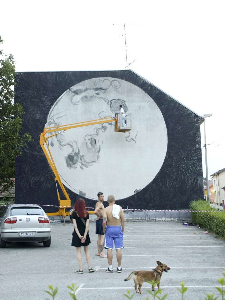 – Mjesec se kao tema provlačio kroz moje radove još za vrijeme studija na Akademiji likovnih umjetnosti u Zagrebu no dosad nisam bio u prilici naslikati ga u željenom formatu kao što je zid u Ludbregu. U trenutku kad mi je suradnja predložena, shvatio sam da je to prilika da naslikam dugo željenu kompoziciju. Mjesec predstavlja nama najbližu, lako vidljivu točku svemira i potiče maštu da krene dalje no što oko može vidjeti – rekao je Martin.