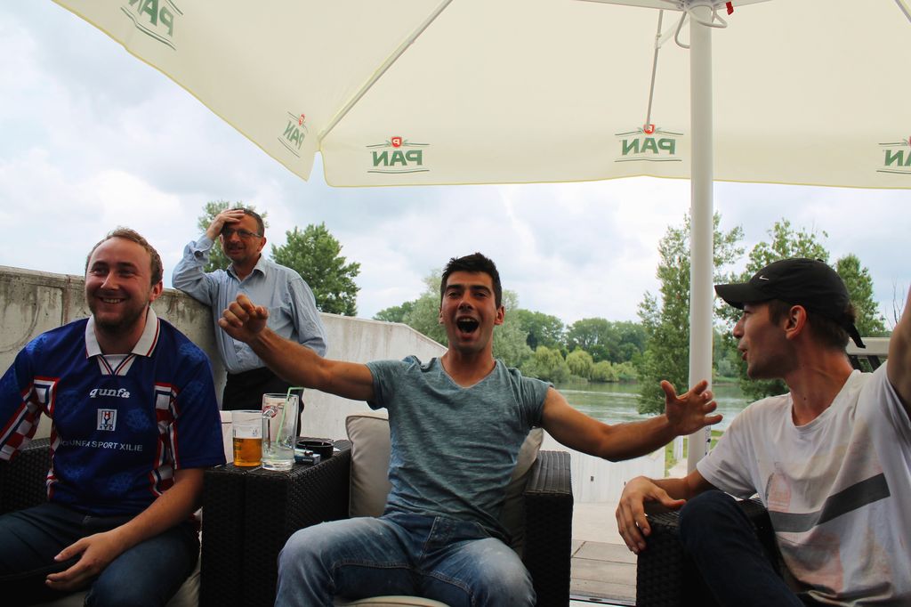 Već prije same utakmice tražilo se mjesto više na terasi, gdje se utakmica prikazivala na velikom video zidu, a s prvim sučevim zviždukom počelo je glasno navijanje za Vatrene. Sa svakom izglednom prilikom na terenu, zastajala su srca okupljenih u nadi da će povesti Modrić, Rakitić, Manđukić i društvo, a upravo prava eksplozija emocija dogodila se u posljednjim minutama prvog dijela utakmice, kada je Modrić majstorski pospremio loptu u mrežu Turaka.