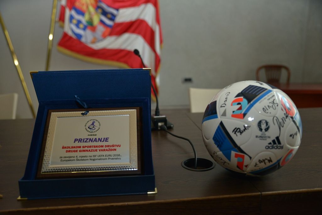 U Županijskoj palači u Varaždinu danas, 9. lipnja, župan Varaždinske županije Predrag Štromar primio je učenike Druge gimnazije Varaždin, odnosno članove muške nogometne ekipe, koja je osvojila četvrto mjesto na Europskom školskom nogometnom prvenstvu.