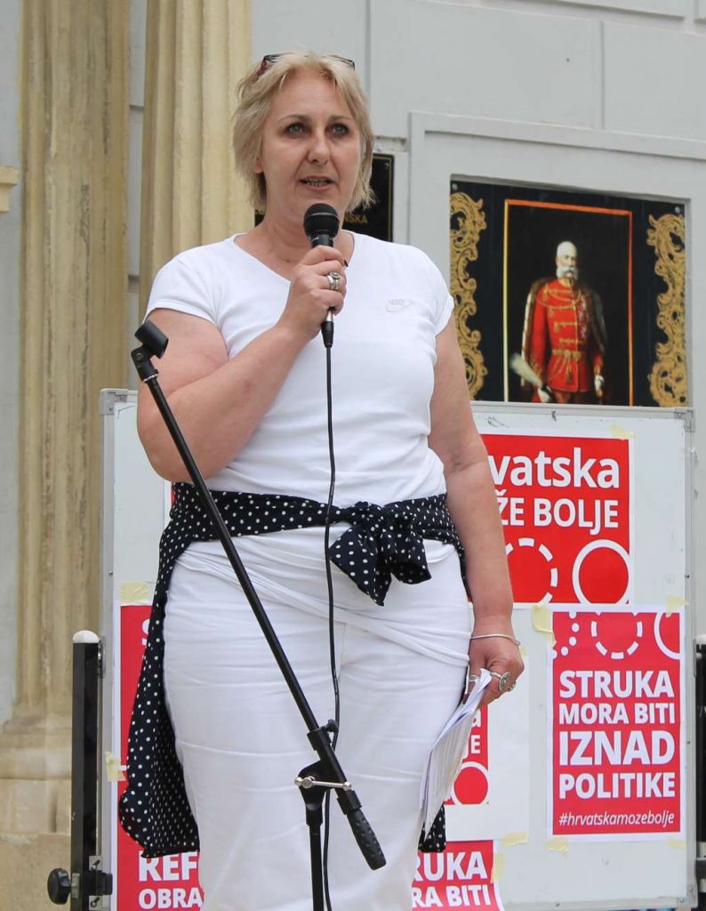 U svome govoru prisutnima je iznijela i sadržaj zahtjeva koji je zajednički za sve skupove koji su se danas u isto vrijeme održavali u gradovima širom Hrvatske, a najveći u Zagrebu.