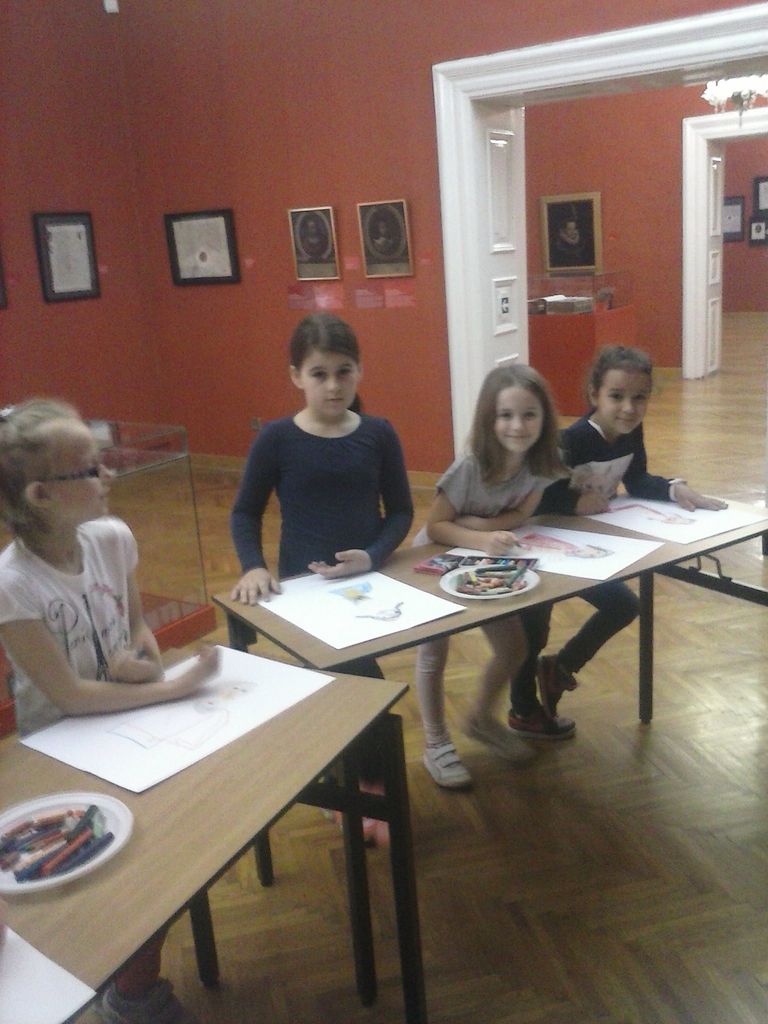 Učenici nakon razgledavanja postava izložbe i zanimljivog te njihovom uzrastu primjerenog vodstva, slikaju portrete Habsburgovaca.