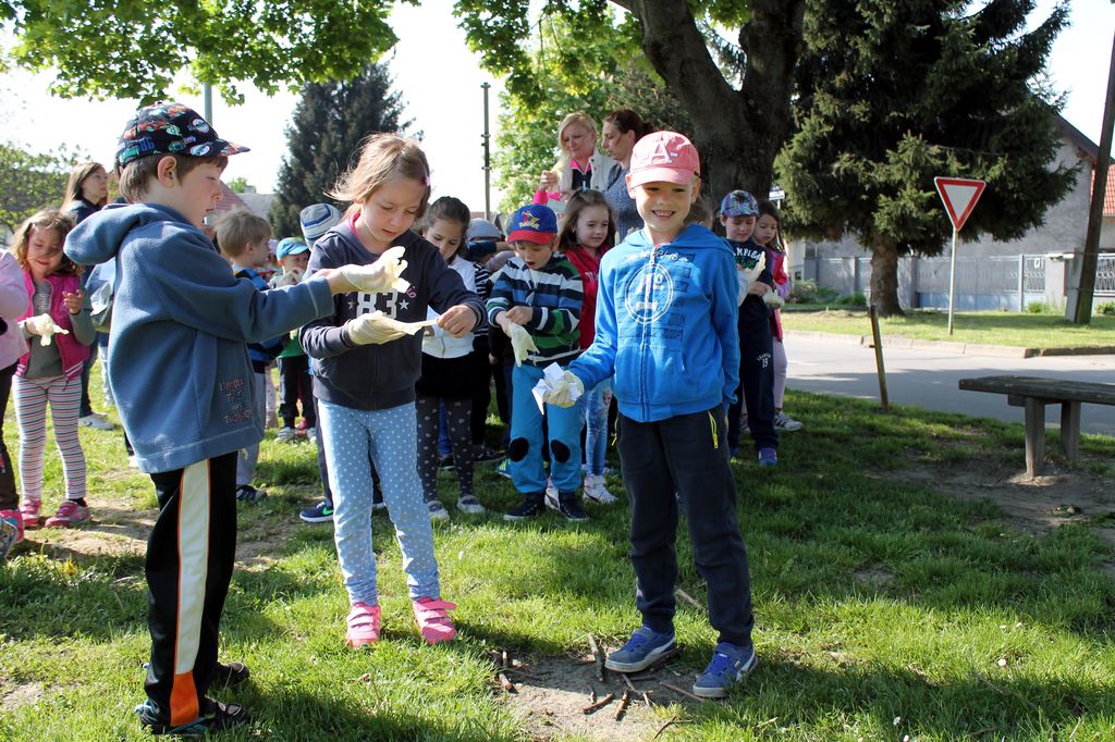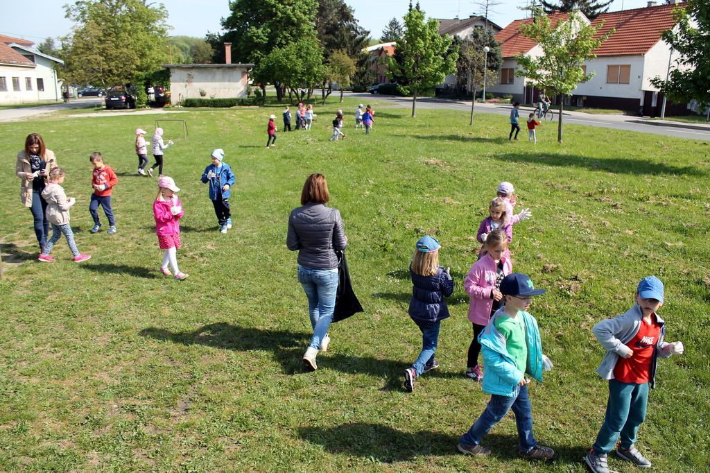Mališani su danas pod motom ‘Čista priroda, zdrava djeca‘ motivirali roditelje i odgojitelje i očistili dva dječja igrališta u blizini njihovog vrtića. Smeće koje su pronašli (staklenke, papire, opuške, metalne dijelove, plastične vrećice i ostali otpad) selektirali su u posebne vreće za papir, plastiku, staklo i ostali otpad te ostavili čišt okoliš kako bi se njihovi prijatelji mogli nesmetano zabavljati na igralištu.