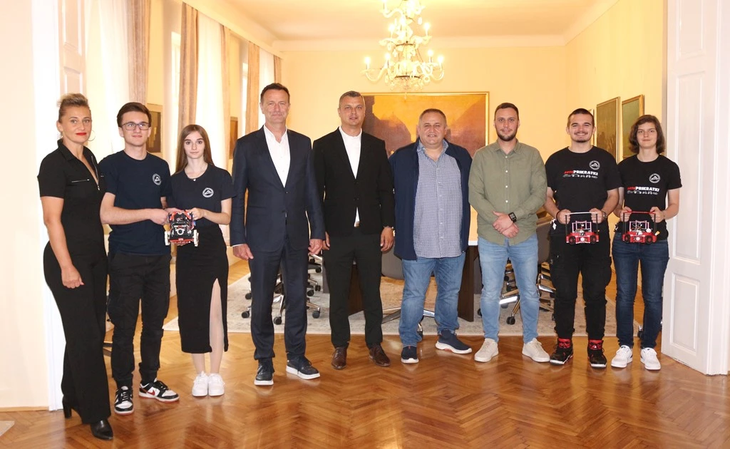 Gradonačelnik Grada Varaždin Neven Bosilj u srijedu je u Gradskoj vijećnici održao prijem za varaždinske robotičare Franka Prikratkog, Marina Rođaka, Vinku Fištrek i Patriciju Radiković te njihove mentore Ivicu Kolarića, Ivana Kolarića, Mariju Bencun i Željka Posavca, timove koji su osvojili zlatne medalje na prestižnom natjecanju RoboCup Americas 2025., nedavno održanom u Pensilvaniji. Hrvatsku su na natjecanju predstavljala čak dva tima iz Varaždina i jedan iz Karlovca. Između 250 natjecatelja, tri hrvatske ekipe osvojile su čak tri zlatne medalje i tako ponovo dokazali da se nalazimo u samom vrhu svjetske robotike.