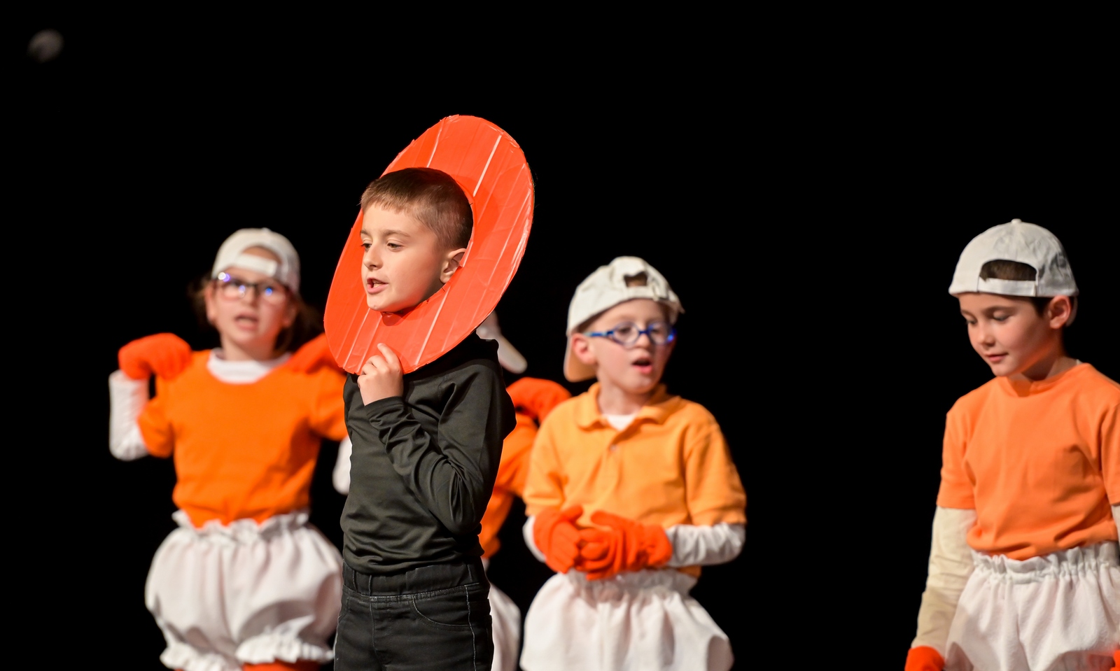 1) učenici 1.a.r. s mentoricom učiteljicom Ljubicom Bešenić te izveli pjevno-plesne točke Mi smo đaci veseljaci i Mojoj mami, te scensku igru Maca papučarica