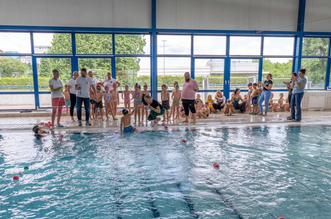 Drugog dana olimpijskog tjedna, u petak, mališani iz varaždinskih dječjih vrtića pokazali su svoju snalažljivost i hrabrost u vodi sudjelovanjem u veseloj štafetnoj utrci koja se održala u malom bazenu Gradskih bazena Varaždin.