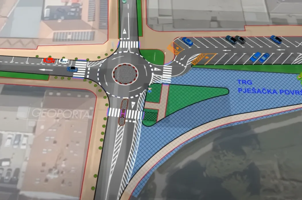 Izlaz iz parkirališta kao i smjer sjever – jug (ŽC 2085, Rajterova – Nazorova), u kome se zadržava dvosmjerni promet, bit će reguliran mini–rotorom, čija je osnovna svrha “smirenje” prometa na glavnom trgu.
