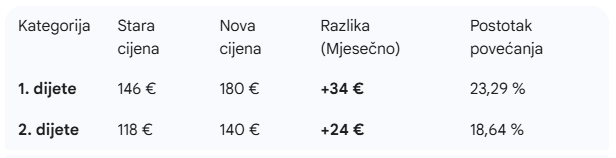 Za obitelj s dvoje djece, ovo poskupljenje tako predstavlja godišnji udarac na budžet od 320 eura.