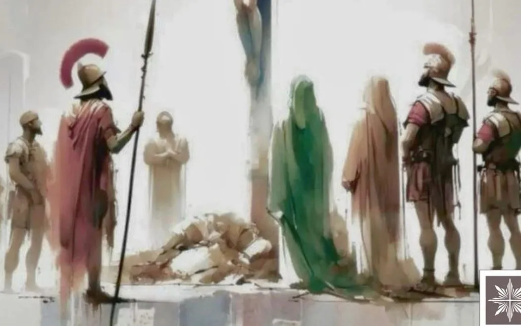 U zatvoru gdje Isusovu muku slušamo kroz oči razbojnika kojeg će s njime raspeti; u palači Poncija Pilata, nezadovoljna što su ga Židovi natjerali da raspne Isusa; na Kalvariji gdje Juda očajava izdaleka prateći Isusa; i na Golgoti gdje Isusovu smrt gledamo očima Barabe, oslobođenog razbojnika koji se na kraju obrati.