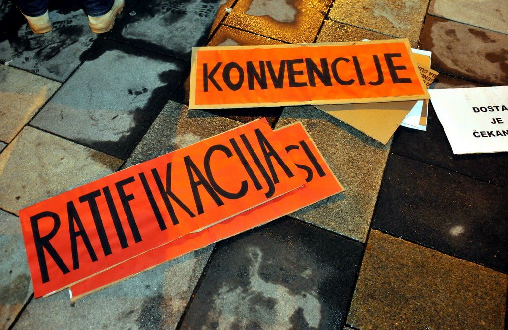 Kroz performans ‘Ovo nije šala, da si barem znala’ izveden ispred Gradske vijećnice, udruga Izražena ukazala je na važnost ratifikacije Istambulske konvencije zbog zaštite žena od nasilja.