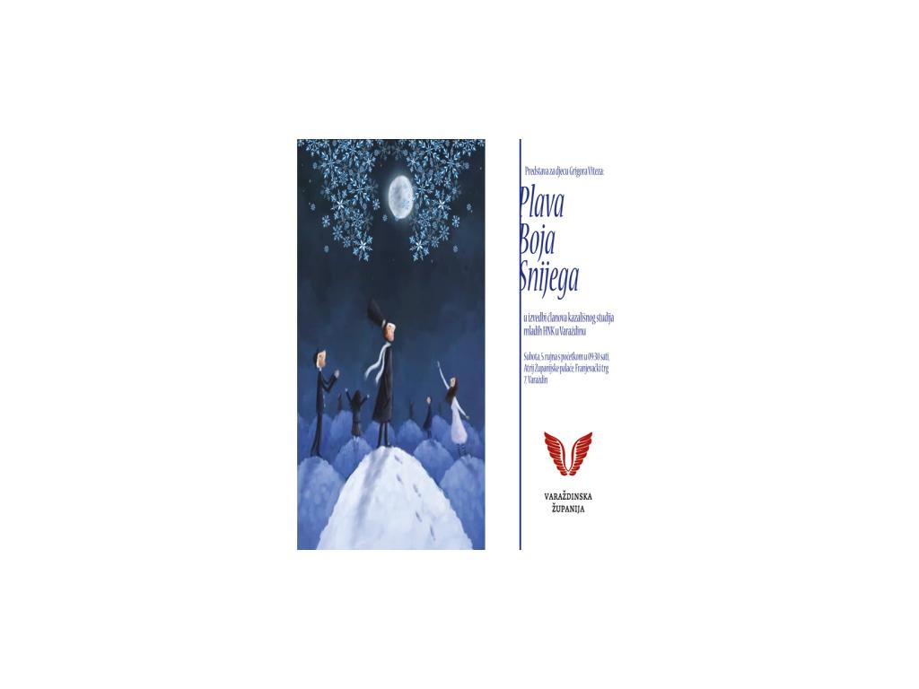 Predstavu za djecu ‘Plava boja snijega‘ Grigora Viteza izvest će članovi Kazališnog studija mladih HNK u Varaždinu. Namijenjena je djeci osnovnoškolskog uzrasta, a duhovite poveznice s nebulozama iz svakodnevnog života pronaći će i odrasli. Naime, to je jedna vrlo neobična priča u kojoj se za svoju ljubav bore jedan pastir i jedna princeza, a prijeti im strašni general Razbinos.
