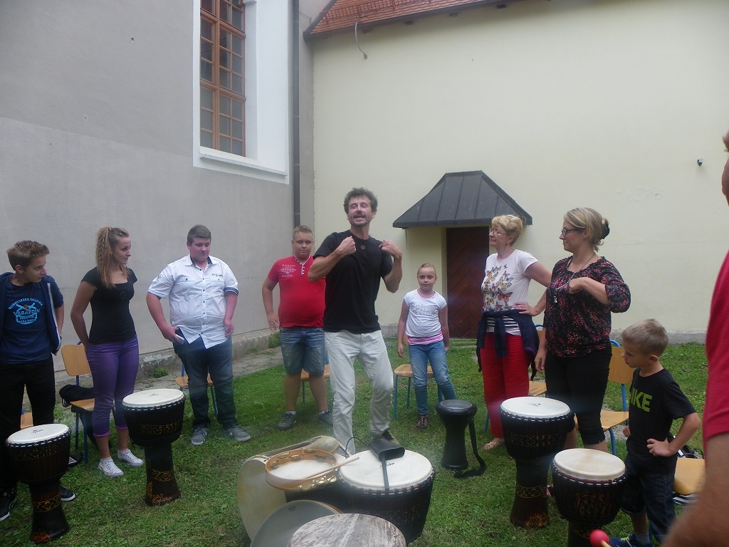 Na prvoj radionici u petak sudjelovalo je dvadesetak hrabrih, što odraslih, što djece i ludo se zabavilo uz razne vrste bubnjeva uz stručno i zabavno vodstvo Traka.