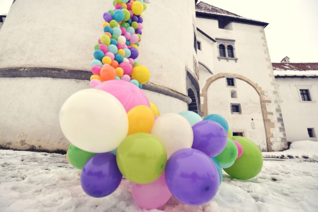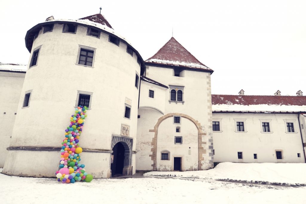 Varaždin je obavijen bijelim plaštom, no šareni i razigran ‘slap balona’ na Starom gradu mnogima je danas upao u oko.