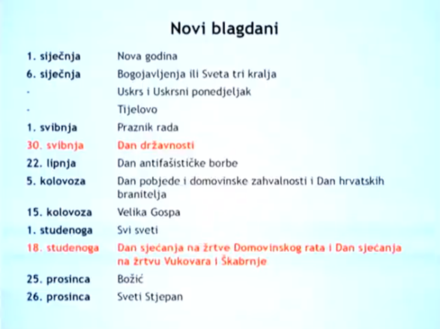 Predstavio je popis predloženih novih blagdana prema kojem bi Dan