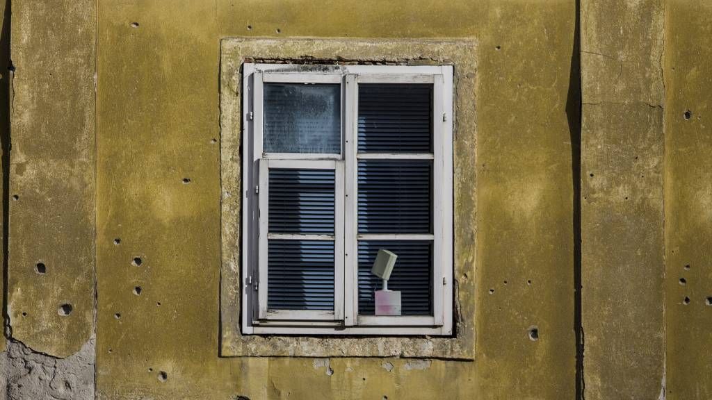 Nešto slično vrijedi i za zgradu malo dalje, u blizini gradskog centra. Tu je čak i neki natpis s izlizanim slovima.