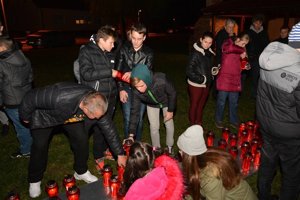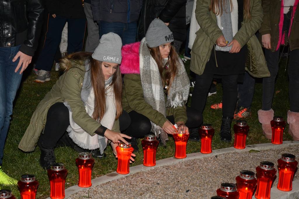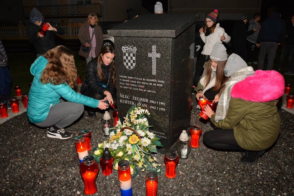 Predstavnici Općine i članovi Udruge, zajedno s velikim brojem učenika viših razreda Osnovne škole Trnovec, zapalili su svijeće kod spomenika kojima su ispisali ime grada heroja.