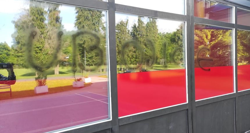 Sada su preko noći na prostorima kojima se služe članovi Kulturane na Graberju ispisani grafiti 'ubojice'.