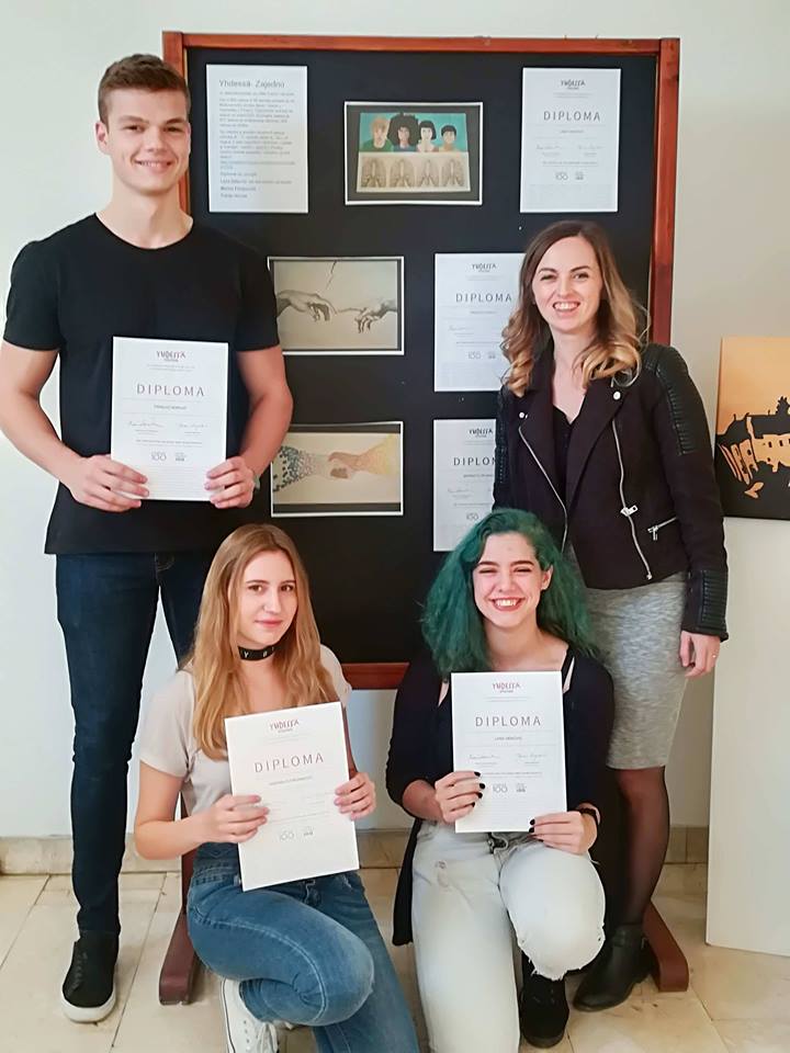 Diplome su osvojili Lana Deković (isti rad izložen je i na izložbi), Marina Florjanović i Franjo Horvat. Mentorica učenika bila je nastavnica Ivana Stepan Kauzlarić.
