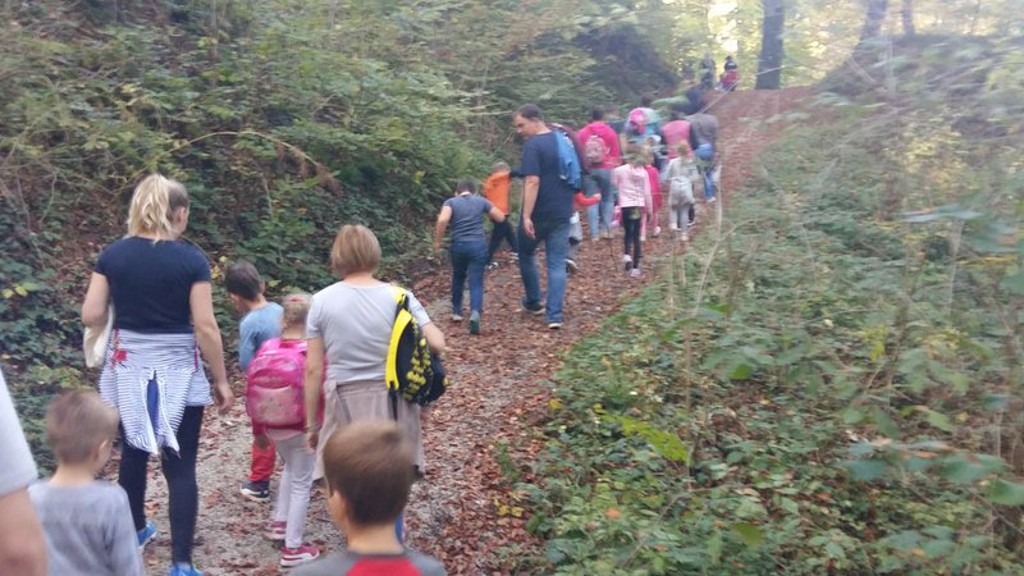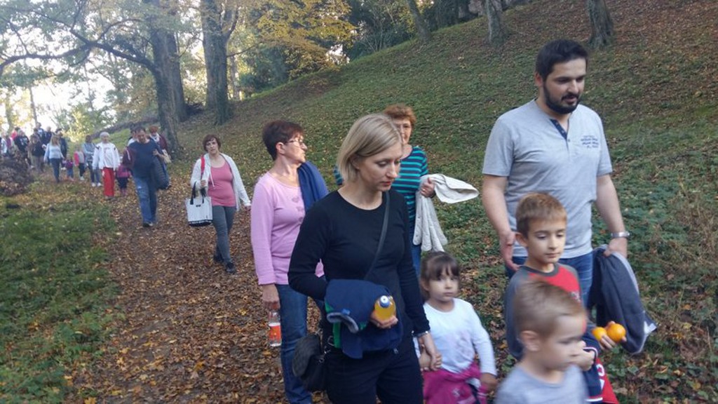 Pješačku su rutu započeli blagovanjem na dvorištu vrtića, nakon čega su se velikoj koloni odšetali do velikog parka.
