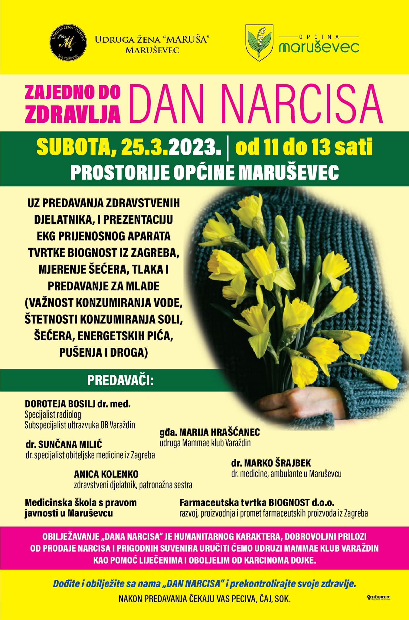 Tom će prigodom članice Udruge žena Maruša dijeliti narcise uz