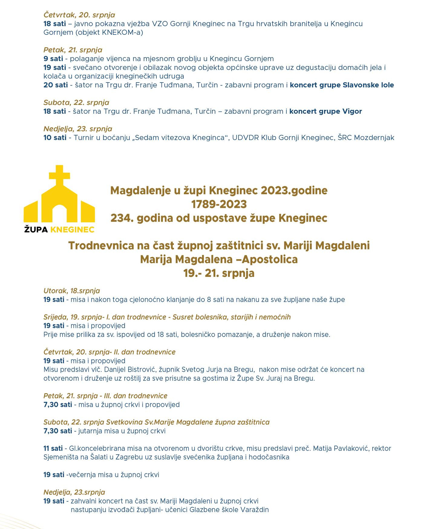 Gornji Kneginec koji se slavi uz blagdan sv. Marije Magdalene –