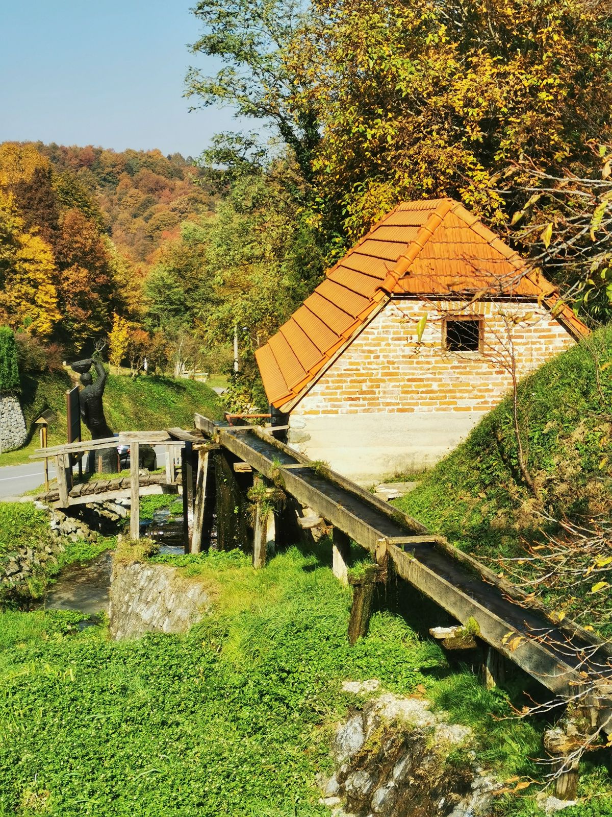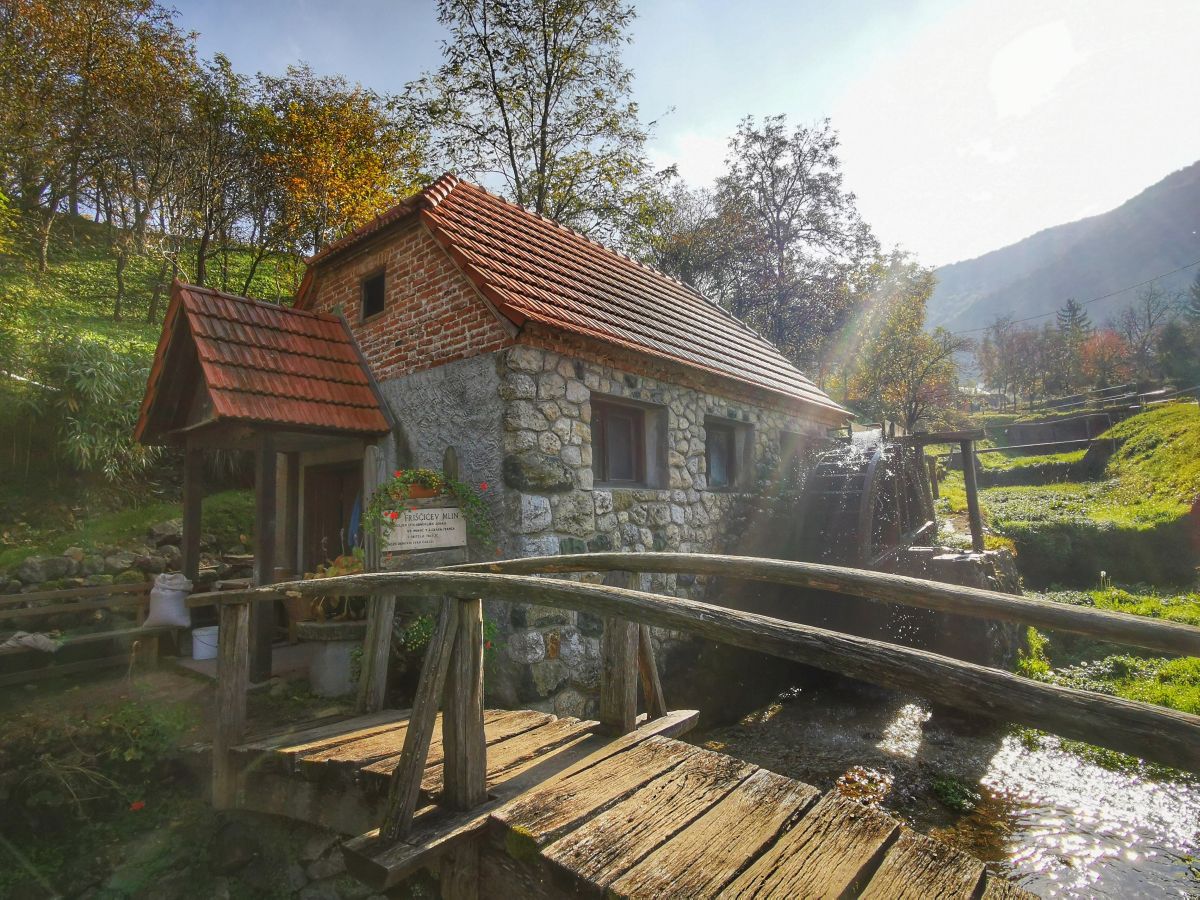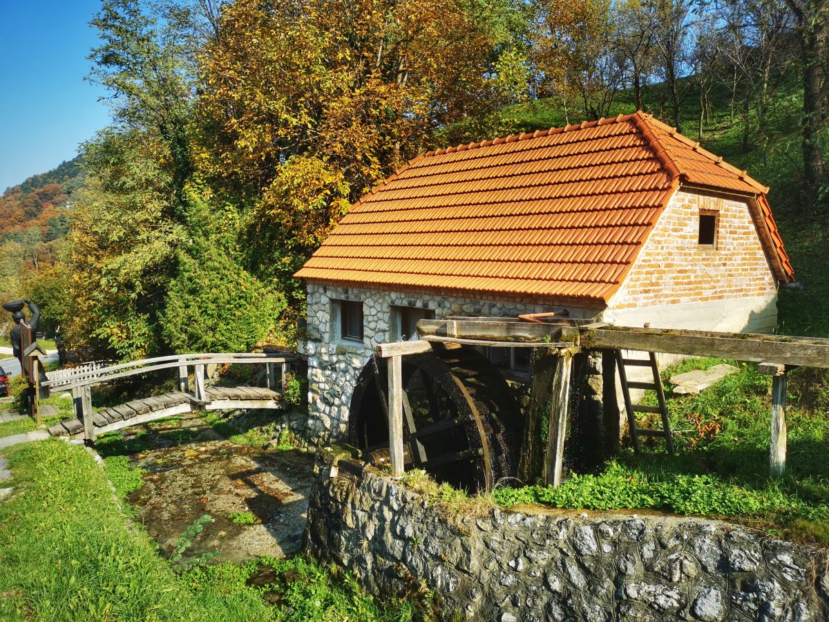 snaga potoka tamo okrene drveno mlinsko kolo, jedno od takvih
