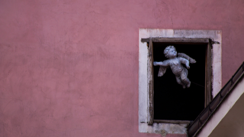 Once you’ve seen them, it’s never the same though: you cannot really avoid thinking about their gaze observing from afar the passersby; it’s impossible to ignore the other angels lazing around the city, painted in wall, watching from the windows, waiting to be bought as a souvenir, etc. I guess they’re meant to be a protector element in Varazdin.