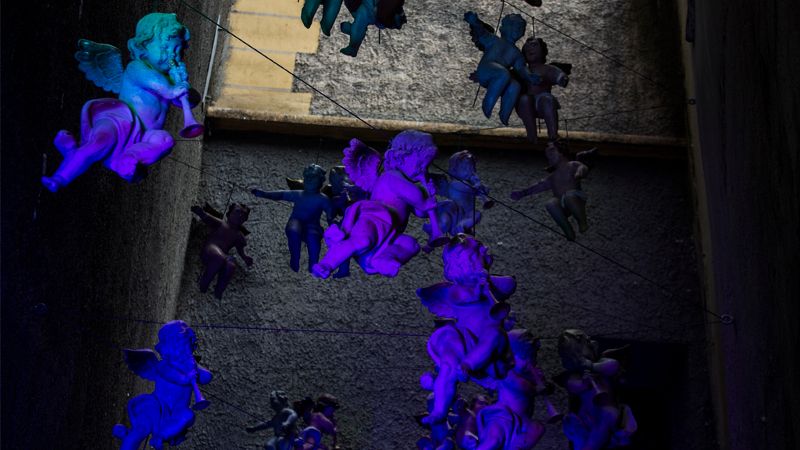 Hodajući Franjevačkim trgom, ispred Županijske palače, u slušalicama mi najčešće svira neka pjesma, a misli su negdje daleko. Ignorirala sam tako tjedan dana nešto što je bilo tu pored mene, u neposrednoj blizini, u uskom kutu ispred Palače. Između dvije zgrade nalaze se anđeli, licima oslikanim plavo, zeleno i ljubičasto.