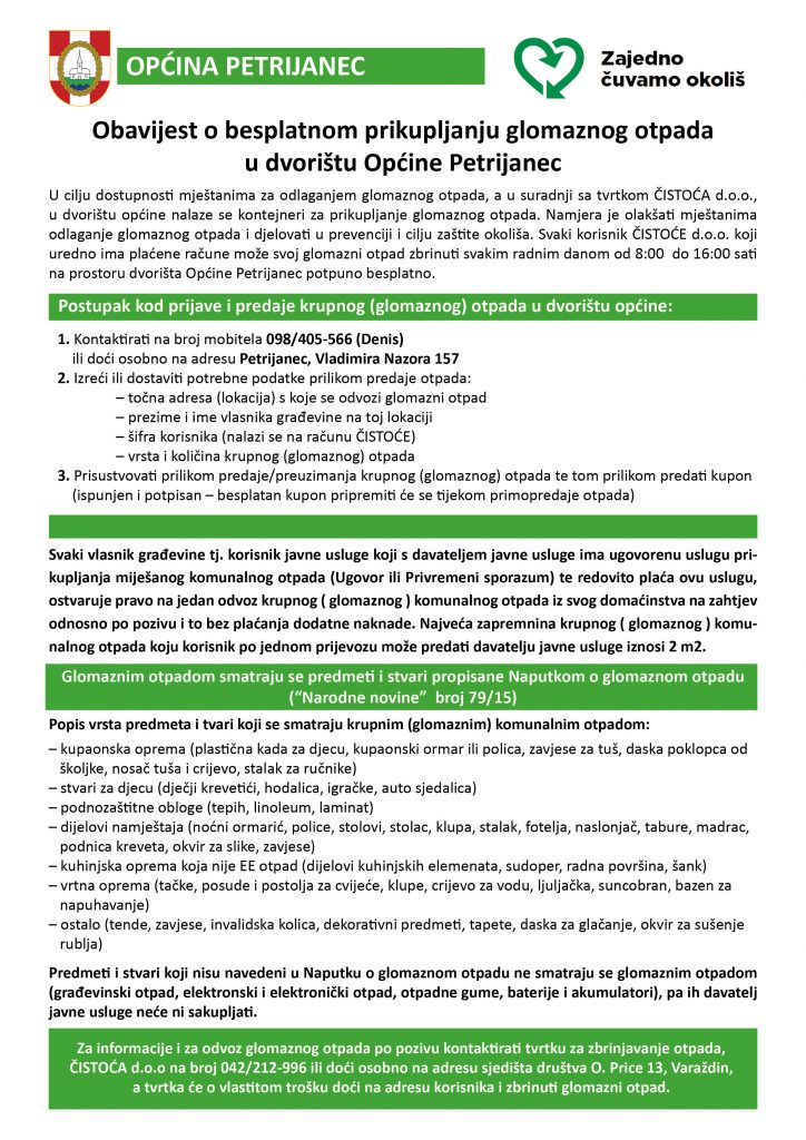 U cilju dostupnosti mještanima za odlaganjem glomaznog otpada, a