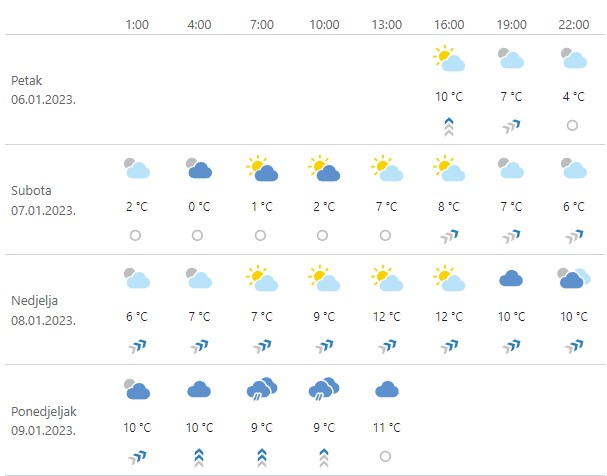 temperatura, koja nas očekuje oko 16 sati, bit će osam stupnjeva