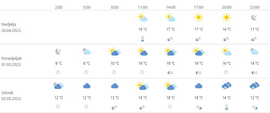 Već oko 11 sati temperatura će biti oko 16 stupnjeva Celzija, a u